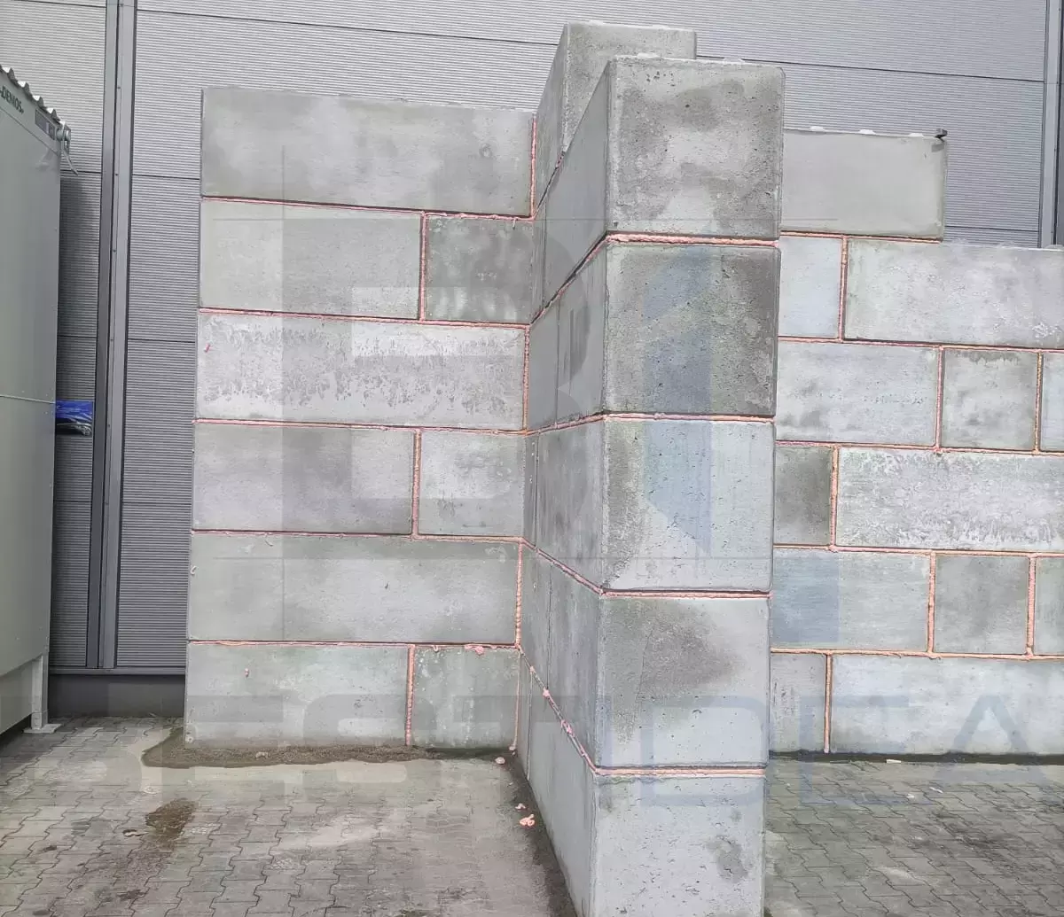 - Układanie "na sucho": Bloki wyposażone są w system wypustów, które zapewniają stabilność i ułatwiają ich wzajemne dopasowanie. Układa się je warstwami, bez użycia zaprawy murarskiej. W razie potrzeby uszczelnienia (np. dla spełnienia wymogów przeciwpożarowych) stosuje się specjalne piany.