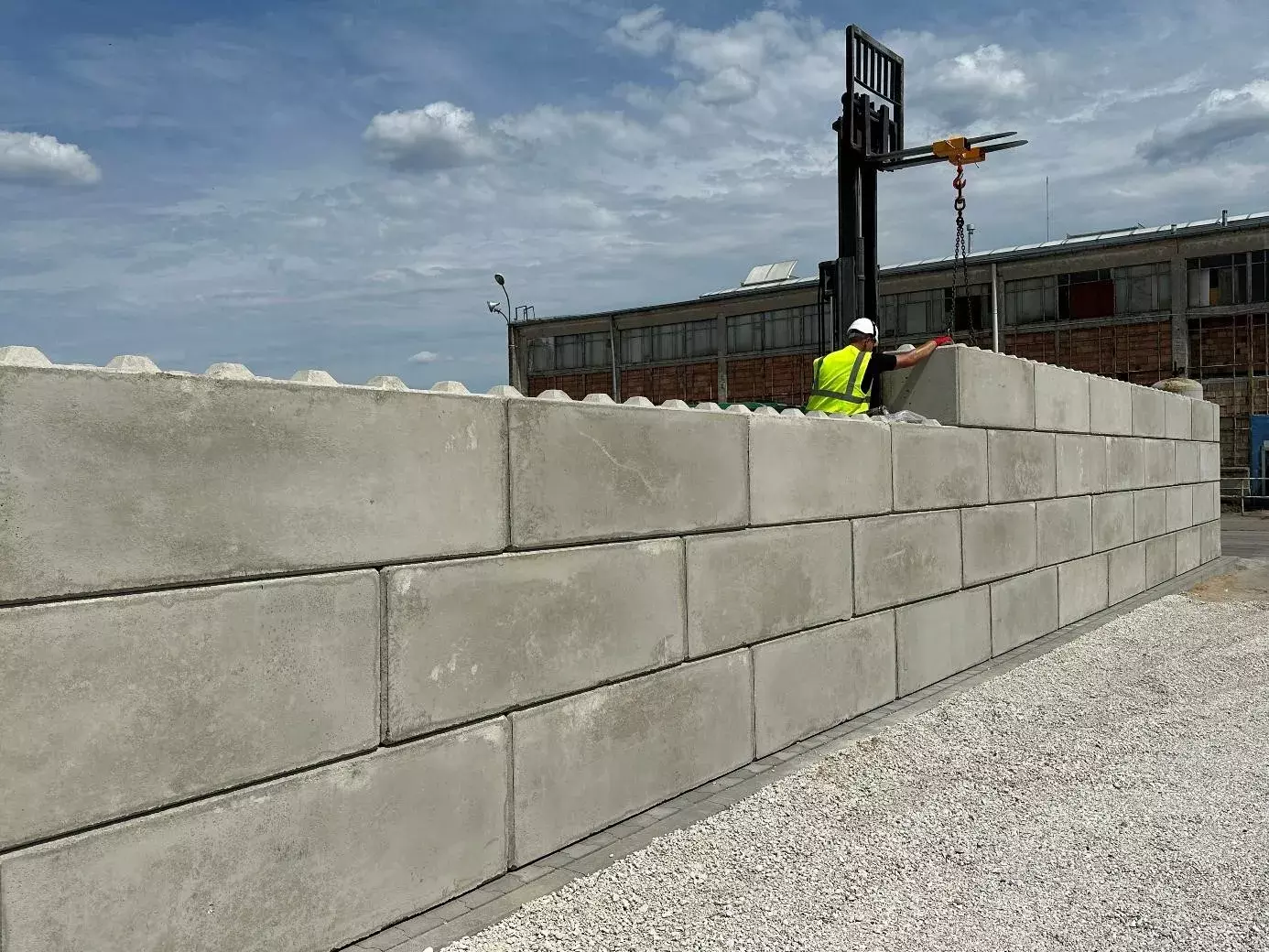 Podczas budowy potrafimy zmienić miejsce układania aby nie przeszkadzać w dostawie materiału. Nasz Klient jest najważniejszy nawet podczas realizacji. Układanie bloczków lego na działającym zakładzie jest dla nas czymś całkowicie normalnym.